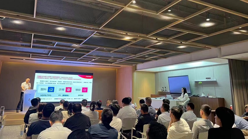 東方雨虹工建集團(tuán)江蘇公司總工程師徐方賓作《建筑底板防水新材料應(yīng)用分析》主題分享,他圍繞《建筑與市政工程防水通用規(guī)范》,系統(tǒng)分析底板HDPE、底板R類橡膠卷材、底板PY類瀝青卷材及底板其他類卷材預(yù)鋪反粘應(yīng)用的方案及優(yōu)劣勢。他強(qiáng)調(diào),通過改進(jìn)防水材料的抗穿刺、抗沖擊等性能及防水施工工法,可以去掉不必要的結(jié)構(gòu)層次,增加防水層的可靠性。