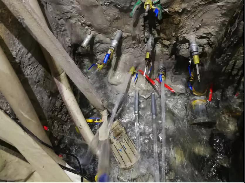 大量涌水和少量涌水的核心區(qū)別在于,分水和注漿阻水不同。少量涌水,可以直接采用CG-205注漿。因為水壓較小,反應(yīng)時間充分(可適當(dāng)延長混合路徑),可以直接堵住。而大量涌水,水壓很大。單純的CG-P205根本來不及反應(yīng)就會被沖走。