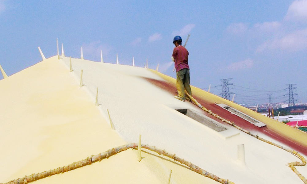 越大屋面保溫防水一體化系統,由噴涂硬泡聚氨酯保溫防水一體化材料與保護面層構成。通過現場噴涂工藝,在屋面形成連續、無接縫的殼體,有效消除冷熱橋效應,實現保溫防水一體化功能。